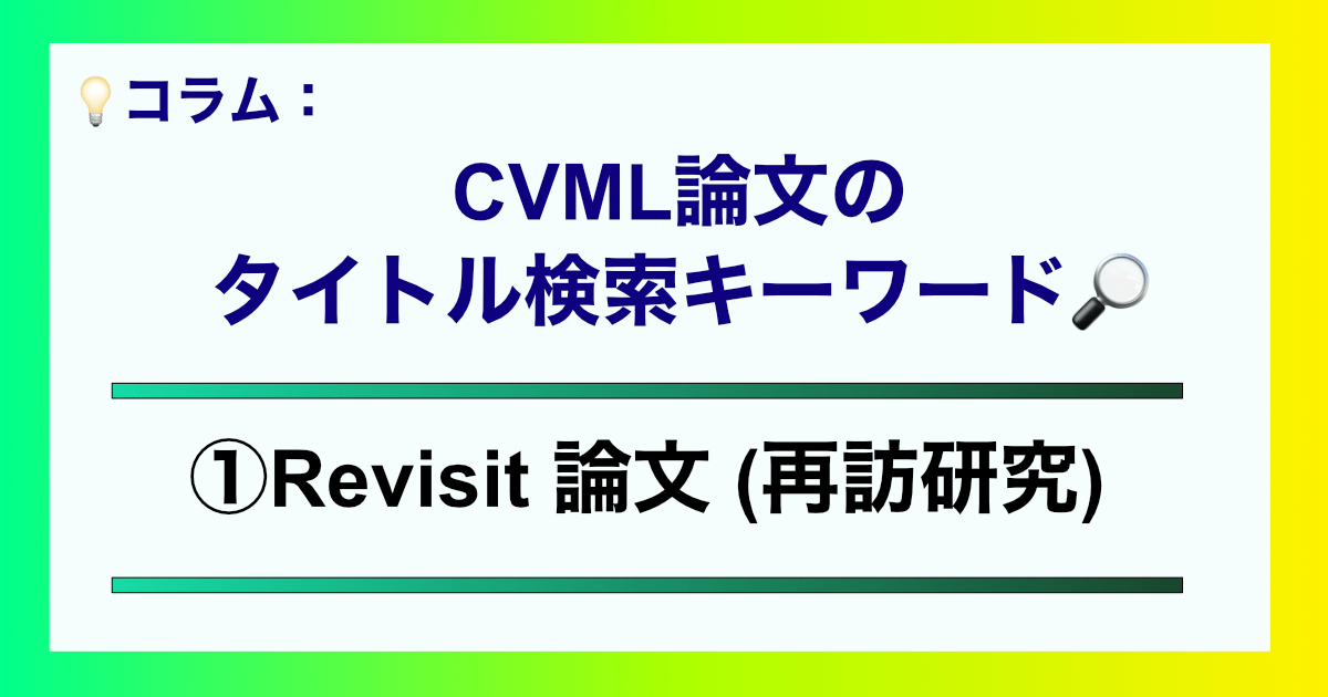 このコラム記事では【🔍CVML論文のタイトル検索キーワード】シリーズの第1回として,論文タイトルにRevisit ついている Revisit論文 パターンの研究について紹介する.